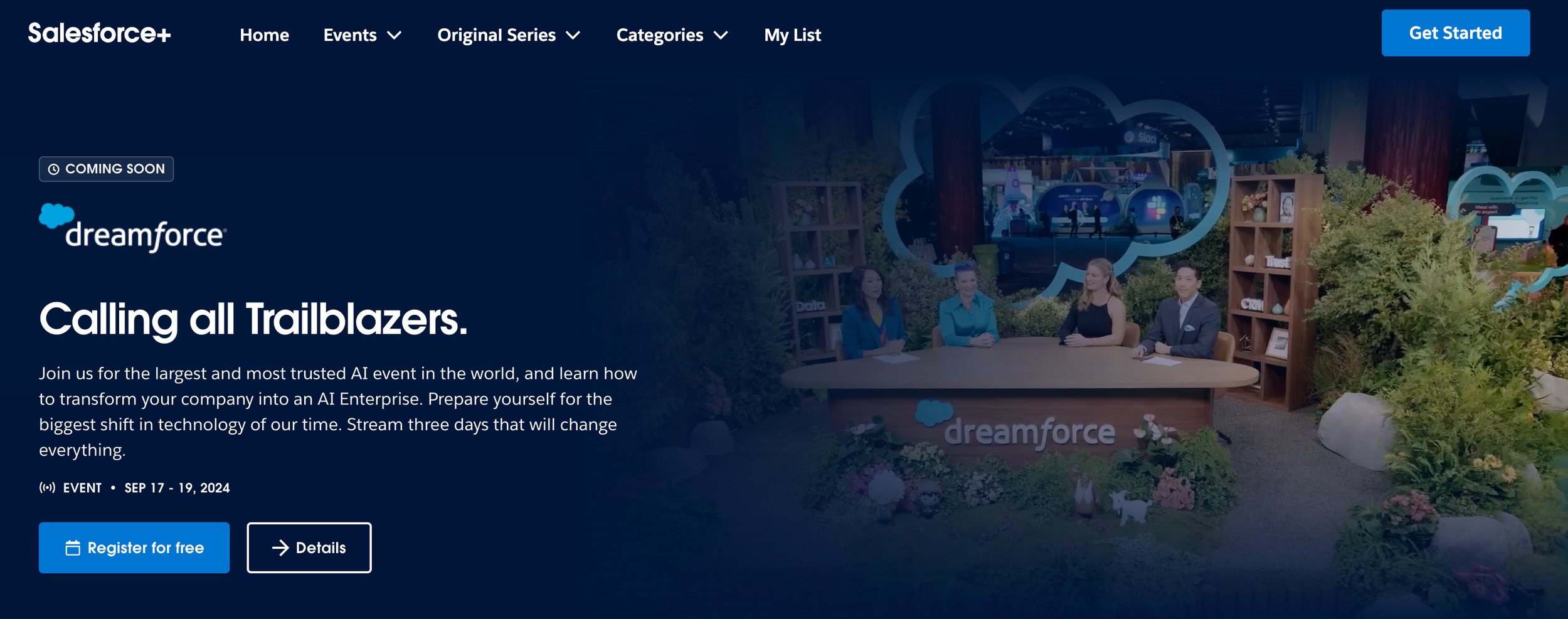 Salesforce+ is a pioneering B2B streaming platform, home to Salesforce events like Dreamforce and original content series. Designed to engage users beyond physical events, it's a key part of Salesforce's marketing strategy. I led the events broadcast team and helped shape the overall content strategy, securing high-profile partnerships including bringing "Pivot" with Scott Galloway and Kara Swisher to the platform. This transformation of Dreamforce into digital-first experiences generated over 10 million views and $500M in pipeline annually.